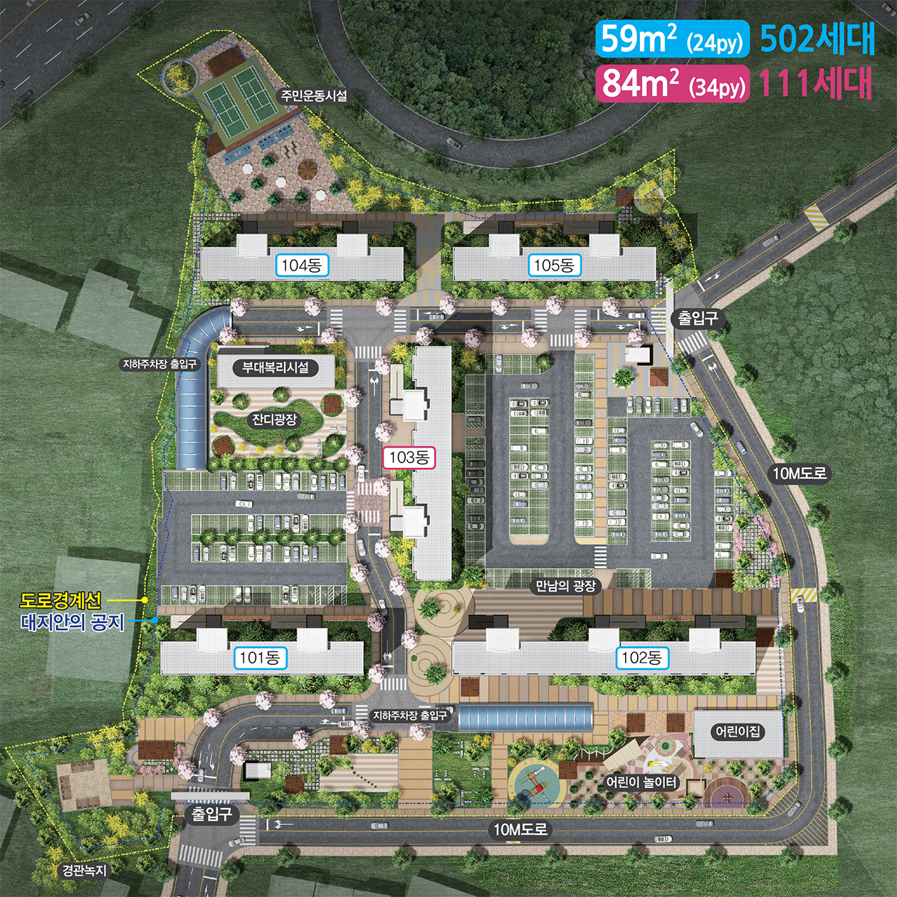 - 본 홈페이지의 이미지에 표현된 건물의 위치와 배치, 외관 및 색채, 수량 등은 소비자의 이해를 돕기 위해 제작된 CG 또는 이미지 컷으로 실제와 차이가 있을 수 있으며, 향후 건축심의, 사업계획승인 등 인허가 진행에 따라 동별, 층별, 용적률, 연면적 등이 변경될 수 있습니다.
